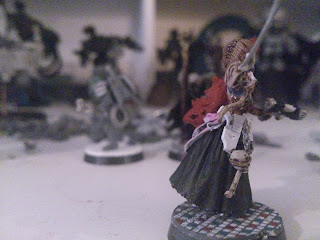 I haven't forgotten my other pet projects. After much deliberation on just what I was going to do about equipment for the little guys my command squad is nearing completion. The Lascarbine ones need new hands greenstuffing and some bits of extra equipment but I'm happy with where they are.